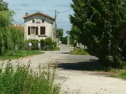 The via Agrippa crosses the Graine River at the site of the former mill of La Soutière and continues northeast of Saint-Quentin-sur-Charente, through an area historically known in the 19th century as lous chiamps roumis.[11] Situated on a ridge marking the watershed between the Loire and Charente river basins, the route intersects with another ancient north–south road, known as the chemin ferré, which connected Périgueux and Poitiers via Nontron, Videix, La Péruse, and Charroux.[12] The cadastral parcel at this junction, located in the commune of Suris, is still referred to as Les Chaussades.[13]