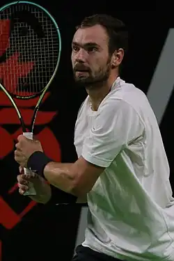 At the 2023 Rolex Shanghai Masters he reached the third round upsetting this time ninth seed Alexander Zverev, his second career top-10 win.[30] At the next Masters in Paris where he qualified on his debut at this tournament,[31] he upset world No. 2 Carlos Alcaraz in the second round in straight sets for the biggest win in his career.[32] He improved to 3-6 against the Top 10 with this win. As a result he reached the top 40 in the rankings on 6 November 2023.[33][34]