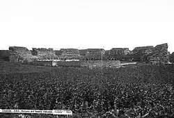 Until the late 19th century, the only visible remains of the theater were the so-called "Seven Chairs", remains of the tops of the bleachers and a formed concrete base covered with granite blocks that made up the façade of the building. The excavations of the theater began in 1910,[1] directed by archaeologist José Ramón Mélida. Having limited resources and methodology was not conducive to the reconstruction progress, which delayed excavation until the late twentieth century, when most of the building was excavated, documenting numerous columns, cornices, statues and other building materials, especially the front stage.