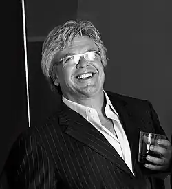 From January 2000 through March 2003, White toured with Jeff Foxworthy, Bill Engvall, and Larry the Cable Guy as part of the Blue Collar Comedy Tour – a show that sold out across the United States in over 90 cities and grossed over $15 million.[1] He made seven guest appearances on Blue Collar TV. In 2005, The WB Television Network aired the pilot for The Ron White Show, a variety show that combined a number of celebrity cameos, cartoons, and sketches. He taped several episodes of The Gong Show with Dave Attell as one of the celebrity judges. White has appeared in the TV shows Kath & Kim, Reno 911!, 12 Miles of Bad Road, the films Sex and the City 2 and Horrible Bosses, and a cameo in a Rascal Flatts music video, "Why Wait".[5] He was one of the executive producers of the 2013 documentary Bridegroom.[6]