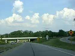 Cross County Highway would have bypassed downtown Montgomery, extending eastward from Montgomery Road to connect with Remington Road halfway to Remington, thus providing better connectivity with Loveland and Milford.[25] However, this easternmost segment was abandoned after Indian Hill refused to pass a resolution of consent, in an effort to preserve the wealthy village's undeveloped greenbelt.[6][26] The highway's abrupt end in Montgomery contributed to a significant increase in traffic to that city: by 1978, Montgomery Road carried an estimated 18,000 cars per day.[27] In 1984, Montgomery city officials unsuccessfully asked the county to either extend the highway east through Indian Hill or truncate it at Interstate 71.[23] Ohio Department of Transportation (ODOT) straight-line diagrams continue to indicate the unbuilt Montgomery bypass as "future construction".[4]