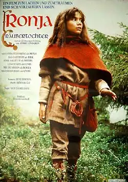 Ronia, the Robber's Daughter (in the UK, Ronja Rövardotter in Sweden, Ronja Robbersdaughter in the USA) is a Swedish fantasy film which was released to cinemas in Sweden on 14 December 1984,[2] directed by Tage Danielsson, based on the 1981 novel of the same title by Astrid Lindgren, and adapted for the screen by Lindgren herself.