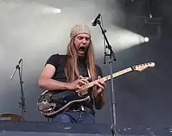 Ronni Le Tekrø (born Rolf Ågrim Tekrø, 5 October 1963) is a Norwegian musician best known as the guitarist and one of the founders of hard rock band TNT, as a solo artist and for his work with Vagabond and Terje Rypdal.[1] He has been described as "one of the foremost purveyors of melodic metal", with Guitar World ranking him as one of the ten best guitarists in the world in 1989 and one of 25 influential cult guitarists in 2009.[2][1][3] Le Tekrø resides in Nyhagen in Vestre Toten, where he also runs his own studio.[1][4] He has released thirteen studio albums with TNT and six solo albums.