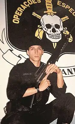 In 1989, Lessa joined the Scuderie Detetive Le Cocq, a death squad created in 1965 to avenge the death of detective Milton Le Cocq d'Oliveira and that aimed at avenging the deaths of police officers as well. He distinguished himself in police operations in drug-trafficking dominated favelas by taking possession of seized assets from the traffickers.[8] In 1991, he joined the Military Police and was transferred to the Civil Police in 2003, where he served until his retirement in 2010. During his service in these law enforcement agencies, he received honors at Alerj (State Legislative Assembly of Rio de Janeiro) and a commendation at the City Council of Rio de Janeiro.[9] According to the 2019 account from an experienced civil police officer who worked with Lessa and preferred not to be identified for safety reasons: