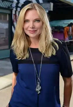 Both Mitchell sisters featured heavily in a BBC marketing campaign preceding their arrival. Several promotional trailers aired on the BBC network in summer 2007. Using the slogan "The square, under new management", one such trailer depicted both sisters as party girls, dancing, serving tequila in The Queen Victoria public house, shocking the older residents with their raunchy antics and squirting men with a soda syphon to the tune of "The Girls" by Calvin Harris.[10] This scene was recreated for the sisters' final episode in 2017.[11] Two other trailers featured Ronnie and Roxy individually. To the instrumental sound of "Little Green Bag" by George Baker, each sister discussed their sibling, giving snippets of information on their personality and the dynamics of their relationship. Discussing Ronnie, Roxy stated that her sister would go to great lengths to prevent her from getting hurt. In turn, Ronnie said "Roxy will always be my kid sister. Fights, broken hearts, over the years we've had them all. She can be quite a handful, and she's definitely gonna stir things up around here. But remember, wherever Roxy Mitchell is... I'm right behind." The promotion was received favourably by Leigh Holmwood, television journalist for The Guardian, who referred to it as "a very slick marketing campaign indeed." Holmwood observed that the upbeat trailers contrasted EastEnders' reputation for depressing storylines, writing "Maybe the arrival of Roxy and Ronnie will herald a new golden age for the soap? Or maybe the BBC marketing department is just very good at putting a trailer together..."[10]