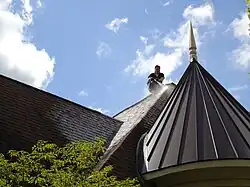 Never use a pressure washer as this may damage the roof.[7] Roof cleaning devices exist that may minimize the spread of airborne radioactive materials (in contaminated areas) and other harmful materials, such as asbestos.[8] Specialized robots have been designed to facilitate cleaning roofs.[9]