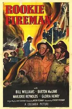 Rookie Fireman is a 1950 American drama film directed by Seymour Friedman and written by Jerry Sackheim. The film stars Bill Williams, Barton MacLane, Marjorie Reynolds, Gloria Henry, Richard Quine and John Ridgely. The film was released on September 8, 1950 by Columbia Pictures.[1][2][3]