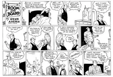 In 1936, cartoonist Gene Ahern created the second strip, a continuation of a previous strip, Our Boarding House, which he drew from 1921 to 1936 for another syndicate. This second Room and Board was discontinued on November 29, 1958.[2] Ahern's Room and Board had no connection with Bostwick's strip other than the like title.[3]