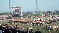 Roosevelt Stadium was a popular venue for drum and bugle corps contests throughout its history. From 1946 to 1983, the stadium hosted The National Dream Contest, "The Dream", for drum and bugle corps organizations.[41] On September 8, 1957, the stadium hosted the ninth annual "National Drum Contest," a competition of eight champion drum corps held by the United Organizations of Bayonne.[42] On September 15, 1963, the stadium hosted the first annual World Open Championship sponsored by Drum Corps News for junior drum and bugle corps in the United States and Canada.[43]