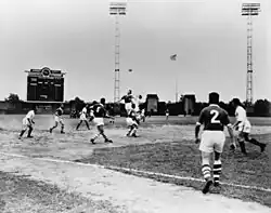Although, initially constructed as a home field for the Jersey City Giants, the stadium later saw its most common use for high school football, as Jersey City's William L. Dickinson, James J. Ferris, Abraham Lincoln, Henry Snyder high schools and the city's major parochial schools, Hudson Catholic and St. Peter's Prep, all used the stadium, particularly on Thanksgiving Day, when Dickinson and St. Peter's would play before soldout crowds.[7] On September 28, 1974, it was the site of the game that set the New Jersey state record for consecutive losses by a high school football team at 42, when Dickinson High School lost to Hudson Catholic, 22–0. The Hawks offense was led by quarterback Steven Neri and halfback Tony Cavallo and Dickinson was held to -2 yards rushing and 18 passing by a Hudson defense led by Steve Cuccinelli, Ray Parente and Bruce Bock. Neri, Bock, Parente and Cuccinelli have all been inducted into the Hudson Catholic Football program's Wall of Fame.[26]