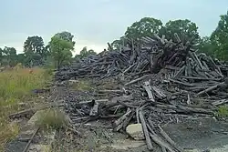 The Ropes Creek line was named after a nearby creek bearing the same name. It was built during World War II to transport munitions factory workers to and from St Marys.[1] The line opened from St Marys to Dunheved on 1 March 1942 and Dunheved to Ropes Creek on 29 June 1942.[2] When electrification arrived in the 1950s, there was a plan to electrify the Ropes Creek line. For the most part all the sidings in the Dunheved station area were electrified to enable the New South Wales Government Railways (NSWGR) to use electric locomotives of the 46 class to shunt trains without the need to change to diesel-electric or diesel-hydraulic locomotives.