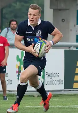 Rory Hutchinson (born 29 January 1995) is a professional rugby union player who plays as a centre for Premiership Rugby club Northampton Saints. Born in England, he represents Scotland at international level after qualifying on ancestry grounds.[1]