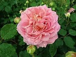 His first commercially successful rose cultivar was 'Constance Spry', which he introduced in 1961.[4] He created a new, informal class of roses in the 1960s, which he named "English Roses". Austin's roses are generally known today as "David Austin Roses". Austin attained international commercial success with his new rose varieties. Some of his most popular roses include 'Wife of Bath' (1969), 'Graham Thomas' (1983), 'Abraham Darby' (1985) and 'Gertrude Jekyll' (1986).[5]