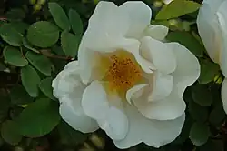Rosa 'Nevada' is a white climbing rose cultivar developed by Pedro Dot in Spain in 1927.[1] It is one of his most successful creations and is named for its colour, as nevada is the Spanish word for "snowy". Its parentage was long under discussion, as Dot introduced the cultivar as a hybrid moyesii, but the cultivar's round, black hips point to its R. pimpinellifolia-parentage.[1] It is probably a cross between Dot's pink hybrid tea 'La Giralda' (introduced in 1926) and the wild rose species Rosa pimpinellifolia var. altaica (synonym R. 'Altaica'), but is sometimes still described as a hybrid moyesii.[1]