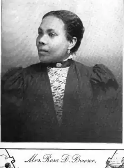 Rosa L. Dixon Bowser (January 7, 1855 – February 7, 1931) was an American educator. She was the first African-American teacher hired in Richmond, Virginia. She organized the Virginia Teachers' Reading Circle, which became the Virginia State Teachers Association, the first organization representing black teachers in Virginia, serving as the organization's president from 1890 to 1892. Bowser was president of the Woman's Christian Temperance Union in Virginia, as well as founder and first president of the Richmond Woman's League.[1] She was a correspondent for the magazine The Woman's Era, and wrote essays for national publications.