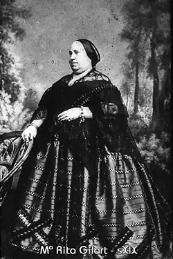 When they were young, the sisters Rosa Maria and Magdalena Gilart moved to Palma to learn to draw and embroider in gold and silk with a barefoot Carmelite friar from the Principality. Later, Magdalena, Rosa Maria and three other sisters, Aina Maria, Rita and Margarida, settled in Madrid, where they gained fame for the quality of their embroidery and receive orders from the state administration, specifically, the Court of Queen Isabel II of Spain. They had a workshop located in the Royal Palace of Madrid.[1][3]