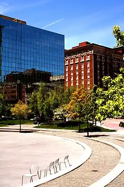 Rosa Parks Circle is a plaza located in the heart of Grand Rapids, Michigan.[1] During the warmer months it is a multipurpose facility, acting as a venue for events like concerts[2] or dances put on by the Grand Rapids Original Swing Society (GROSS).[3] In the winter the Circle is converted to an ice rink.[4] Below the ice there are 166 fiber optic lights designed to represent the sky of Michigan as it appeared at midnight, January 1, 2000.
