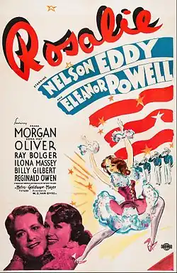 Rosalie is a 1937 American musical film directed by W.S. Van Dyke and starring Eleanor Powell, Nelson Eddy and Frank Morgan. An adaptation of the 1928 stage musical of the same name, the film was released in December 1937.[4] The film follows the story of the musical, but replaces most of the Broadway score with new songs by Cole Porter. The story involves the romantic entanglements of a princess in disguise and a West Point cadet.