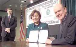 - ^ Office of Public Affairs, US Department of the Treasury, "U.S. Treasurer Rosario Marin Remarks for Junior Achievement of New Mexico," Archived 2009-08-06 at the Wayback Machine (press release) PO-3364 (August 14, 2002).