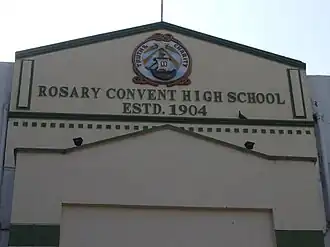 Rosary Convent High School is a Roman Catholic private-run girls' school in Hyderabad, India. Established in 1904 by the Franciscan Missionaries of Mary, it continues to be run by these Missionary Sisters who reside in their convent at the school's grounds. The school was established in response to a need for Catholic girls' education. It became the sister school to All Saints High School, the area's prime Catholic boys' school in those days. These two schools are located on either side of St Joseph's Cathedral in Gunfoundry, Hyderabad, India.