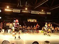 The Rose City Rollers is a women's flat track roller derby league based in Portland, Oregon, operating as a 501(c)3 non-profit organization, and is a founding member of the Women's Flat Track Derby Association (WFTDA).[1] Established in 2004, the Rose City Rollers consists of a recreational program, four adult local home teams, and two all-star travel teams that represent the league in competition with others as well as junior skaters on six home teams with a travel team for Rose Petals (7–12) and a travel team for Rosebuds (12–17). Rose City's all-star travel team "Wheels of Justice" won the WFTDA Championships in 2015, 2016, 2018 and 2019.[2]