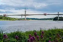 The Rose Fitzgerald Kennedy Bridge is an extradosed bridge over the River Barrow in Ireland. It was built as part of the N25 New Ross Bypass, and was officially opened on 29 January 2020 by Taoiseach Leo Varadkar and opened to traffic on 30 January 2020, becoming Ireland's longest bridge.[2][3] The bridge received in 2021 an Outstanding Structure Award from the International Association for Bridge and Structural Engineering.[4][5]