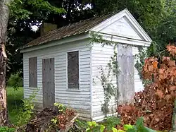 Along with the loom house and Hodsden's office, which was built as part of the "country villa," surviving outbuildings at Rose Glen include a double-cantilever barn, smokehouse, springhouse/well-house, a hay barn, a concrete silo, and an outhouse. Hodsden added the smokehouse, Hodsden's son-in-law Abraham Hicks probably built the springhouse and double-cantilever barn, and Hodsden's grandson John Hodsden Hicks added the corn crib, silo, and rack-sided barn.[3]