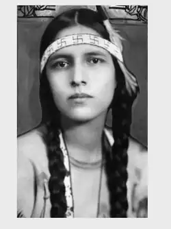 Her parents' marriage was an inspiration for Rosebud's ability to cross cultural bridges.[3] Chauncey taught her and her sisters Chauncina[4] and Evelyn[5] in Lakota tradition. On occasion, elderly Indians would visit the grounds of the Indian School and tell stories in the Lakota language. Chauncey would have Rosebud listen, even though she could not understand a word, and later he would retell the stories in English. Chauncey chose to send his daughters to the Rapid City public schools for their academic orientation, instead of the Indian School which focused on vocational courses in agriculture, blacksmithing and domestic arts. Rosebud enjoyed the Indian School's library and programs.[6] Chauncey spent many hours with his children telling the tales he was told by his grandmother and grandfather.[7]