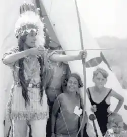 The Indian Village at Jones Beach was created as a Plains Indian village for children with three large tipis. The large Council Tipi contained museum cases with artifacts borrowed from the American Museum of Natural History. The other tipis served as club houses for the children.