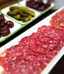 Rosette de Lyon (French: [ʁɔzɛt də ljɔ̃]) is a cured saucisson from France.[1][2] It is made from pork and usually served thinly sliced.