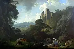 Roslin Castle is one of the places featuring in Sir Walter Scott's poem Rosabelle.[13] A ballad named Roslin Castle was written in the 18th century by Richard Hewitt of Cumberland,[14] the lyrics and music of which are recorded in volume one of the Scots Musical Museum collection of Scottish songs.[15] The castle was also used as a location for Ron Howard's film adaptation of Dan Brown's book, The Da Vinci Code.[16]