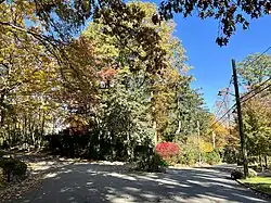 Like the rest of Long Island's North Shore, Roslyn Estates is situated on a terminal moraine known as the Harbor Hill Moraine.[16][17][18] This moraine was formed by glaciers during the Wisconsin Glacial Episode, The moraine is named for Harbor Hill – the highest geographic point in Nassau County, which is located in nearby East Hills.[17][18][19]