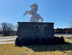 In the summer of 2017, the district embarked on a major renovation project at the high school, as part of a district-wide modernization initiative.[16] This renovation included completely gutting and renovating the first floor hallways, demolishing, replacing, and expanding the library, constructing an additional gymnasium, installing air conditioning in the world language and math/2nd floor science hallways, reconfiguring the front circle and constructing an entrance plaza (including an awning and vegetation) and security vestibule, expanding and resurfacing the faculty and student parking lots by relocating the district's bus garage to an area adjacent to one of the elementary schools, and creating a student lounge next to the school store.[17][18][19] Further renovations were completed during the summer of 2018.[20] Additionally, the center of the front circle would remain the home for one of the marble horse tamer statues from the Mackay estate, which was restored and re-dedicated on October 10, 2019.[6][21][22]