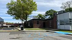 Roslyn Junior High School opened in 1957 as the southernmost school in the district, located just north of the Northern State Parkway and the district's southern border, and just south of what is now the Long Island Expressway (Interstate 495) and its eastbound service road (Powerhouse Road).[24][25][26] The Long Island Expressway reached Roslyn a year later, in 1958, replacing former NY 25D with a limited-access highway.[27][28][29][30][31] As a result, Roslyn Middle School is the only school in the district to be south of the Long Island Expressway.[26][32][33]