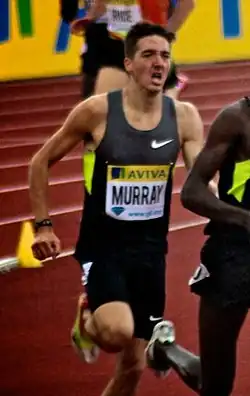 Murray finished runner-up behind Andy Baddeley at the British Athletics Championships.[4][5] The following month in July 2012, Murray ran the mile at the London Grand Prix, placing second with a time of 3:52.77.[1] In the preliminaries of the 1500m at the 2012 Olympics, Murray ran a 3:36.74 to finish fourth in his heat and qualify for the semi-finals.[6] Ross did not qualify for the event finals as he finished tenth in his semi-final with a time of 3:44.92.[7] Murray has a personal best time of 3:34.76 for 1500 metres (2012), which was almost 10 seconds faster than his season's best of 3:43.93 from 2011.