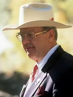 Rowland subsequently hosted several more steam-powered trains, including the Golden Spike Centennial Limited train in 1969.[9] Rowland's most famous accomplishment was the American Freedom Train, a steam-powered exhibit train which toured much of the continental US over 1975 and 1976 in conjunction with the celebration of the United States Bicentennial.[10] Rowland's actions in setting up the American Freedom Train would lead to him being awarded an honorary lifetime membership in the Brotherhood of Locomotive Engineers and Trainmen.[3]