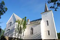 Rossfjord Church (Norwegian: Rossfjord kirke) is a parish church of the Church of Norway in Senja Municipality in Troms county, Norway. It is located just northeast of the village of Rossfjordstraumen, along the coast of the Malangen fjord. It is one of the churches in the Lenvik parish which is part of the Senja prosti (deanery) in the Diocese of Nord-Hålogaland. The white, wooden church was built in a cruciform style here in 1885. The church seats about 250 people.[1][2]