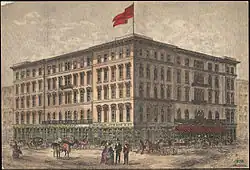 Rossin House Hotel was a mid-19th century hotel located at the southeast corner of King Street and York Street in Toronto, Canada. The original structure was built in 1856-1857 (corner was occupied by Chewitt Building) and was destroyed by a fire and re-built in 1863. It was one of the city's pre-eminent hotels, with one 1866 guide claiming, "What the Fifth Avenue Hotel is to New York, and the Windsor is to Montreal, so the celebrated Rossin House is to Toronto."[1]