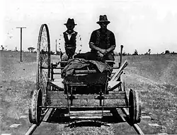 The New South Wales Government Railways constructed in 1903 a device for measuring the length of its lines of railway. That authority named the machine a Rotameter. It consisted of a four-wheel trolley with an additional large fifth wheel which traveled along the running surface of the rail. Its last recorded use was in the 1920s.[1]