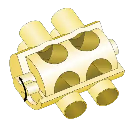 A rotary valve (also called rotary-motion valve) is a type of valve in which the rotation of a passage or passages in a transverse plug regulates the flow of liquid or gas through the attached pipes.[1] The common stopcock is the simplest form of rotary valve. Rotary valves have been applied in numerous applications, including: