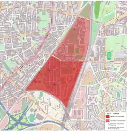 On the Berlin city map, the neighborhood is located within a distinctive triangle bordered by railway lines in the southwestern corner of the city center. The large trenches dug to accommodate the tracks for trains and light-rail make crossing one of the many bridges that span the tracks, and that form the area into an "island", the only ways to access this part of Schöneberg. Its comparative isolation from the adjoining parts of Berlin is why the area is considered insular. Its peculiar history is indicative of the sharp contrasts with which modern German history since 1871 abounds. Up until the end of World War I, roughly half of the Island's territory was marked by its extensive use by the Prussian army, whereas the other half was a distinctively working-class residential district, dominated by voters of left-wing parties (hence the "red").