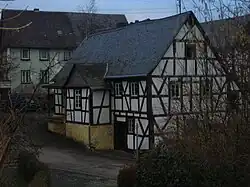- Kastellauner Weg 1 – L-shaped estate; timber-frame house, partly slated, hipped mansard roof, early 19th century, timber-frame barn