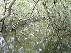 In 1888 and 1889 (when the area was known as Deception Bay), there was a long-running attempt to sell a subdivision known as the Isle of Man estate (27°13′05″S 153°02′18″E / 27.2180°S 153.0382°E), bounded to the east, south and west by Saltwater Creek (called Fresh Water Creek in the advertising material).[8] The land was promoted as being near the proposed Redcliffe railway line.[9] However, the lots were either never sold or never developed. Although the subdivision can be seen on cadastral maps until at least 1978,[10] at 2020 the land has returned to a single undivided and undeveloped parcel.[3] This may relate to the flood-prone nature of Saltwater Creek.[6]