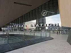 Rotterdam Centraal station (Dutch pronunciation: [ˌrɔtərˈdɑm sɛnˈtraːl]; English: Rotterdam Central station) is the main railway station of the city Rotterdam in South Holland, Netherlands. The station received an average of 112,000 passengers daily in 2019.[1] The current station building, located at Station Square, was officially opened in March 2014.[2]