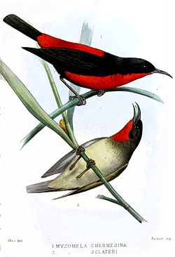 - ^ BirdLife International (2016). "Myzomela chermesina". IUCN Red List of Threatened Species. 2016: e.T22703871A93940999. doi:10.2305/IUCN.UK.2016-3.RLTS.T22703871A93940999.en. Retrieved 25 September 2021.