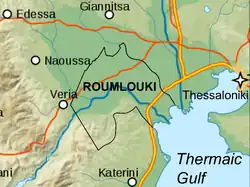 Roumlouki (Greek: Ρουμλούκι, from the Ottoman Turkish Rûmlık, "place of the Rûm")[1] or Kampania (Καμπανία), is the traditional name of the northeastern part of Imathia located in Macedonia, Greece, specifically the plain of the lower Aliakmon River.