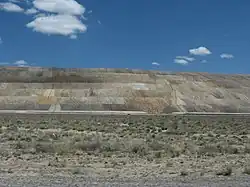 Round Mountain is best known for the Round Mountain Gold Mine, a large open pit heap-leach gold mine owned by Kinross Gold Corporation. The first gold production from the Round Mountain District was in 1906, and by 2006 the mine had produced over 10 million ounces of gold, worth about US$9.5 billion at 2009 prices. Ore reserves and resources total about 1.8 million ounces of gold as of the end of 2007.[1] The gold occurs on the rim of an ancient collapsed caldera and is mainly fine-grained, with visible (and sometimes spectacular) gold occurring in structural intersections.[4]