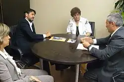 Today, round tables are often used at conferences involving many parties. The most famous modern round table was the one used for talks between the Communist government and Solidarity in Poland in 1989; see: Polish Round Table Agreement. Hence, the term "round table" is also used figuratively to refer to a peaceful way of achieving a compromise solution.
