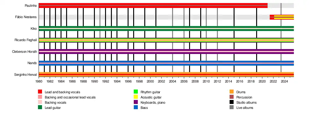 - Paulinho: lead and backing vocals, percussion (1980–2020; his death)