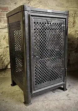 During the Second World War, a manufacturing ban was imposed on the production of steel furniture in Germany. This also led to considerable restrictions for the company in supplying customers throughout Europe.[15] A letter from 1941 from Rowac to the wheat starch factory Crespel & Deiters in Ibbenbüren reveals that the processing of the steel chassis of the swivel chairs was switched to beech wood.[15] The Rowac company initially continued operating during this period because it fulfilled orders for the navy, aviation, the military, the national defense industry, the Ingolstadt ammunition factory, the state railway, the German state post office and police. These were furnishings, such as various boxes, tables and benches, which were also used for air-raid shelters.[2] In 1946, however, the company was expropriated and converted into VEB BEMEFA (industrial equipment and hardware factory).[1] In 1990, the company bemefa Metallmöbel GmbH was privatised and has remained at the same location ever since.[16]